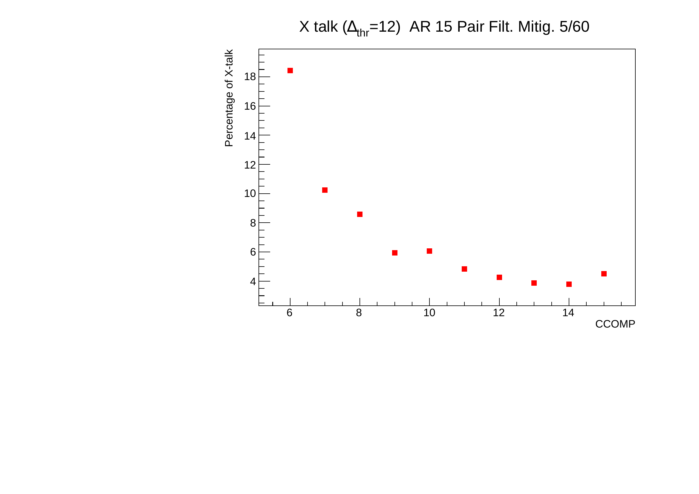We finally repeat the study with an asymmetric threshold and with pa_ccomp set to 10. The working point ( V) is identical to the one obtained with a symmetric cut at 10 but the crosstalk is really improved. The retrigerring loss at 2 kHz rate stays around 0.3 % and is acceptable.