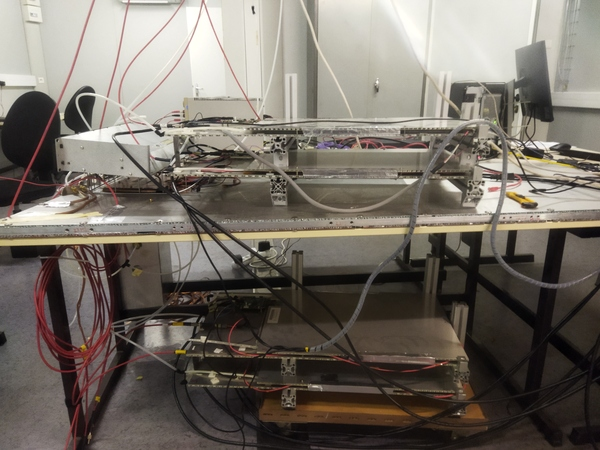 The telescope chambers are covered with a PCB of 1536 pads of 1 cm read by Omega asic HardROC2.
