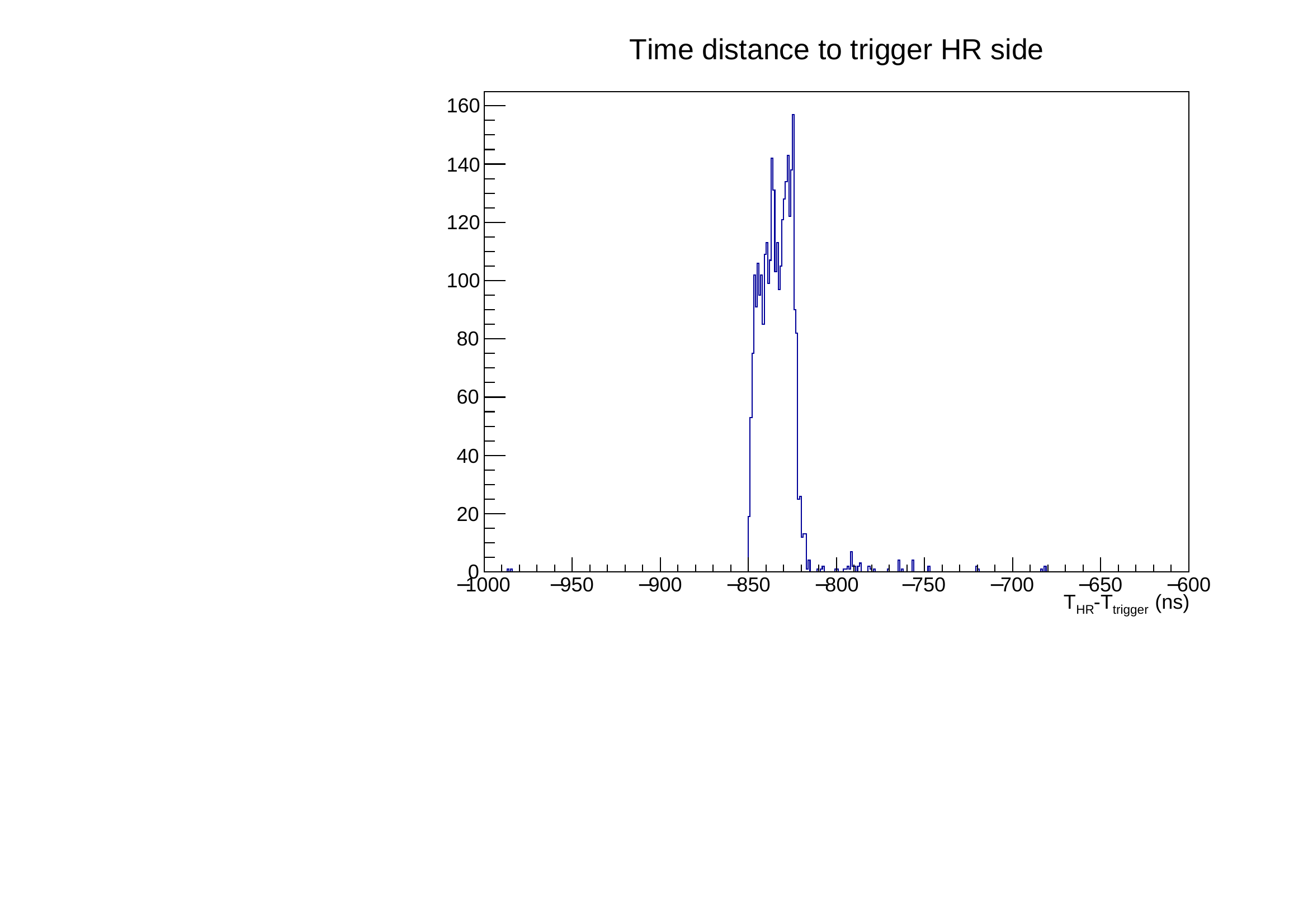 The coincidence of the 2 signals is propagated by the FC7 to the RESYNC signal (channel 32) on each FPGA and only orbits with this coincidence are read. The time distance of chamber hits to this signal on high radius side is shown on figure, strips hits are selected if ns.