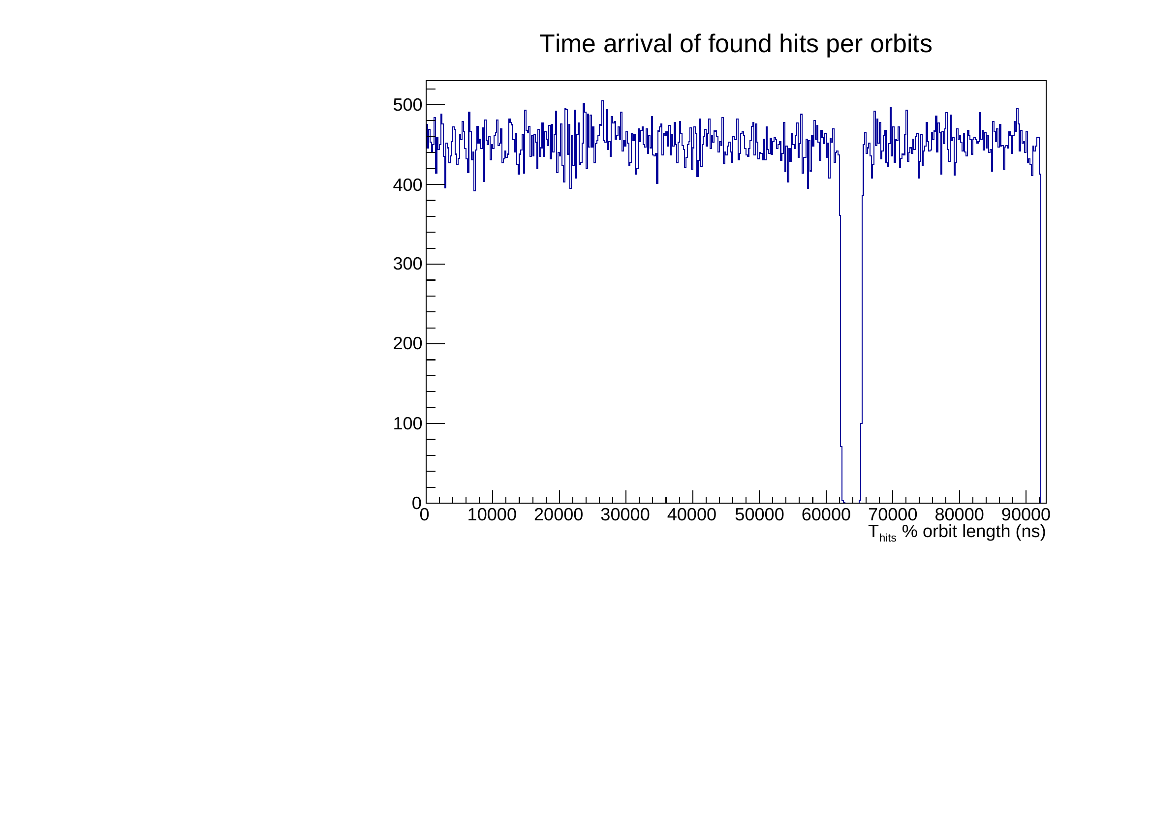 Looking to the time selected hits in FEB modulo the orbit length we can clearly see the orbit gap inefficiency that is taken in account to correct efficiency measurement.